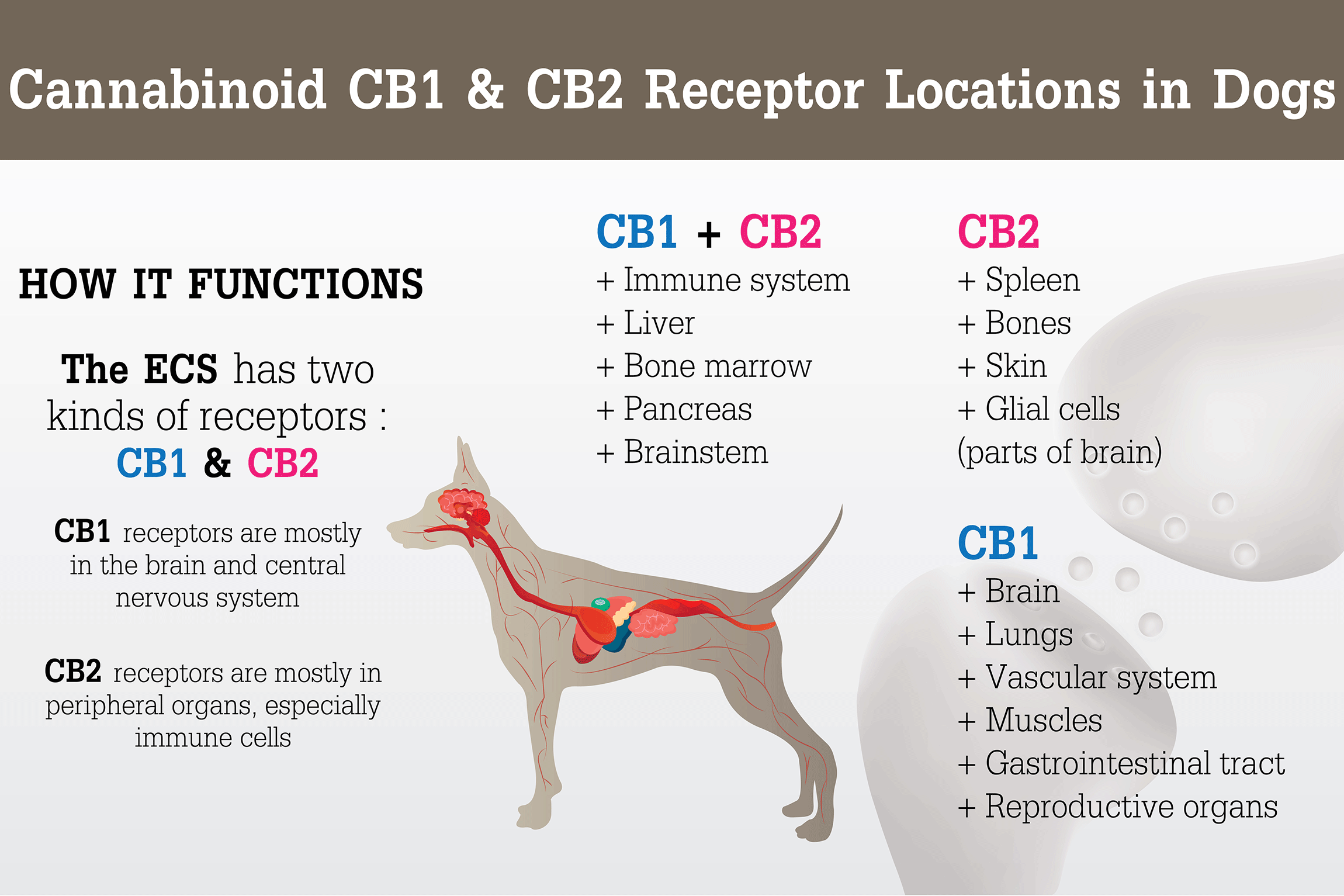 Through communication with every other system in the body, the endocannabinoid system has a role in nearly all of the body’s essential functions. You can think of CBD as the fuel that both our and our pets endocannabinoid system needs to carry out these balancing functions.